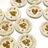 Kaunis puinen nappi. Napin halkaisija 25mm. Reiän halkaisija 2.5mm.