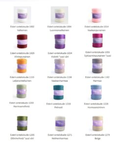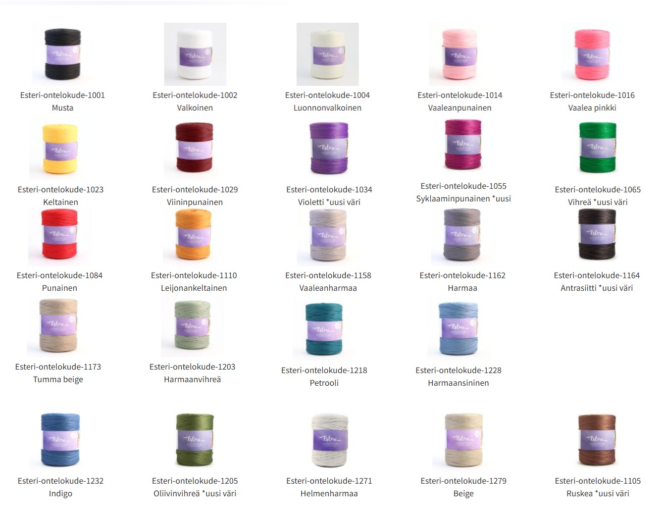 Esteri kuuluu ontelokuteiden suosittuun perheeseen. Se sopii samoihin tarkoituksiin kuin esim. kierrätyspuuvillaiset Lilli- ja Mini-ontelokude, mutta se on valmistettu polyesteristä. Esteri-ontelokuteella on monta hyvää ominaisuutta. Sen värinkesto on erinomainen ja se kuivuu nopeasti. Se ei kutistu, ja se on valmiiksi kartiolla, joten sitä ei tarvitse keriä vyyhdiltä ja lisäksi sen virkkaaminen käy liukkaammin kuin puuvillakuteiden. Suosittelemmekin Esteriä, jos kudevirkkauksen raskaus arveluttaa. Esteri-ontelokuteesta valmistettu virkattu matto ei myöskään kerää pölyä ja lika on siitä helppo pyyhkiä pois.