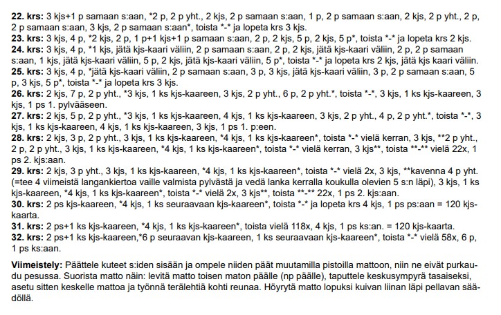 Huom. Polyesterikuteesta valmistettu matto tarvitsee alleen liukuesteen. Kude on tasalaatuista, mutta eri erissä/väreissä voi esiintyä pieniä vaihteluita paksuudessa, erinomainen värinkesto. Tuotantoteknisistä syistä kude saattaa sisältää solmuja.