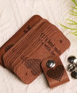 Ohuet ja hyvin taipuisat merkit merkit sopivat myös pehmeisiin neuleisiin tai sukkiin. Kiinnitys mukana tulevalla nastalla. Materiaali laadukas keinonahka, merkin koko 20mm x 63mm.