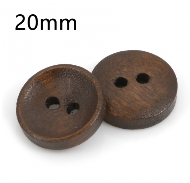Kahvinruskea puunappi, napin halkaisija 20mm.