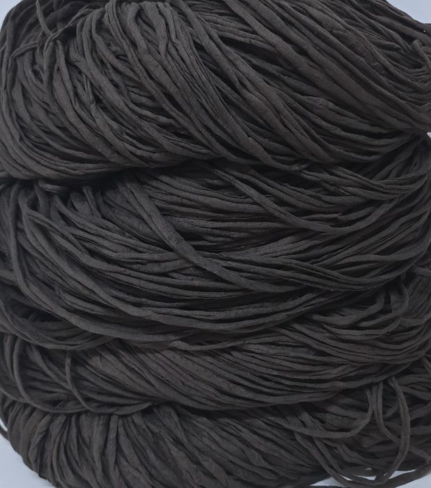Tummaa kahvinruskeaa trikookudetta valmiiksi vyyhdittynä. Kuteessa ei ole tärkkiä eikä venyvää lycraa. Materiaali 100% puuvilla. Koukkusuositus 7mm-8mm. Säkin paino 5.99kg.