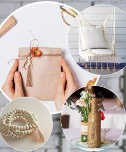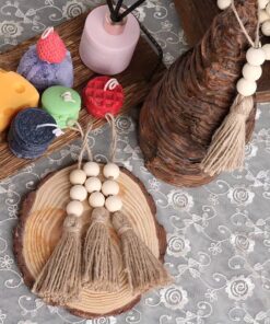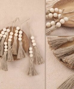 Juuttiköydestä valmistettu tupsu kolmella käsittelemättömällä puuhelmellä. Tupsun kokonaispituus 19cm ja helmen halkaisija n.16mm. Kaunis koriste vaikkapa makramee- töihin tms.