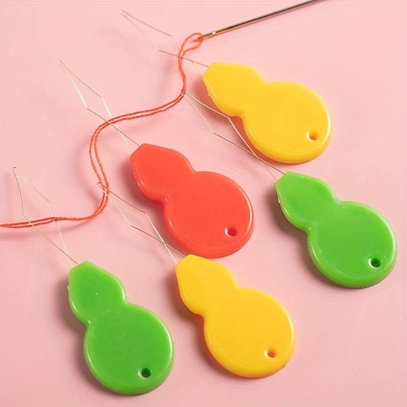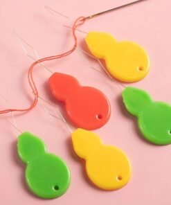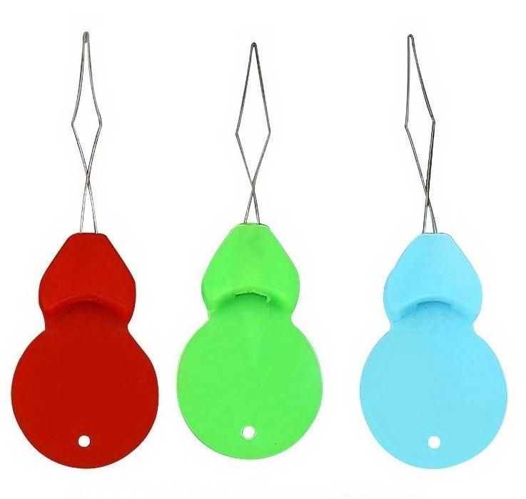 Toisessa päässä on joustava, ohut silmukka, joka pujahtaa pienemmänkin neulan silmästä läpi. Materiaali pp-muovi/teräs, koko 1.9cm x 5cm. Satunnaiset värit.