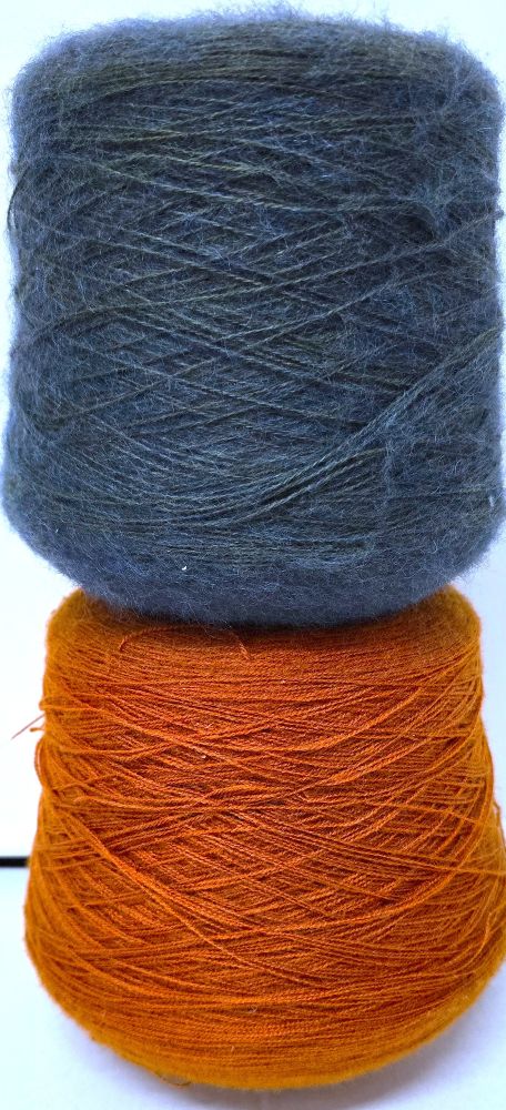 Neulekoneessa käytettyjä kartiolankoja 2 kappaletta. Oranssi lanka on akryylisekoitetta? ja vihertävän sininen kartio on mohairsekoitetta. Oranssin kartion paino 890 grammaa ja petroolinsinisen 760 grammaa. Petroolinsininen italialaista Filatin lankaa. Oranssista ei tietoa. Molemmat pehmoista lankaa, koukkusuositus 1-2mm eli sopivaa vaikkapa neulekonelangaksi. Edullisesti!