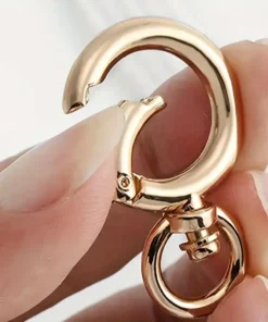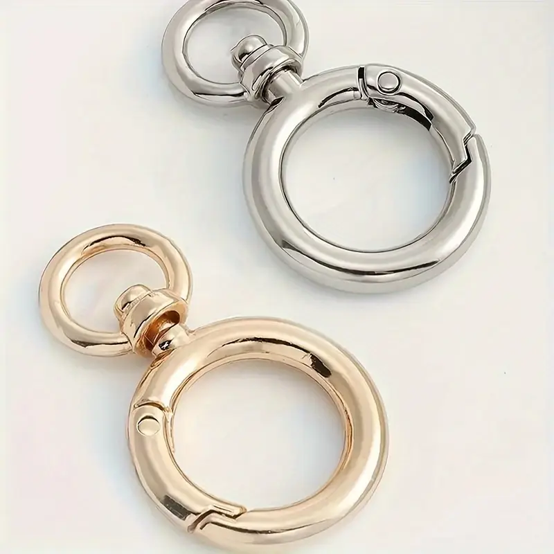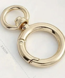 Metallinen laukkurengas pika-avauksella. Renkaan koko n.3.9cm. Väreinä joko kulta tai hopea. Materiaali sinkkiseos.