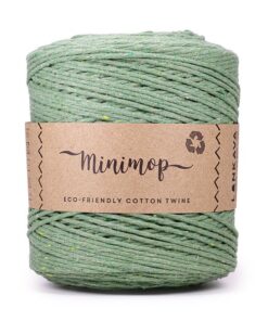 Minimop-lanka on löysäkierteinen ohuehko (Ø 2,5 mm), narumainen kierrätypuuvillalanka, joka sopii mm. makramee-töihin, virkkaukseen, neulontaan sekä ripsiliinojen kuteeksi.
