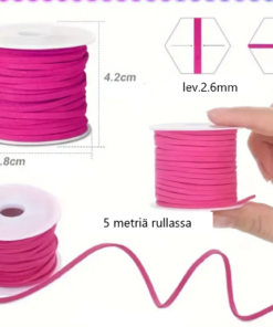 Upean väriset nahkajäljitelmä nauharullat! Aidon tuntuinen mokkanahka, 25 erilaista väriä, jokaisessa rullassa 25 metriä nauhaa jonka leveys n.2.6mm.