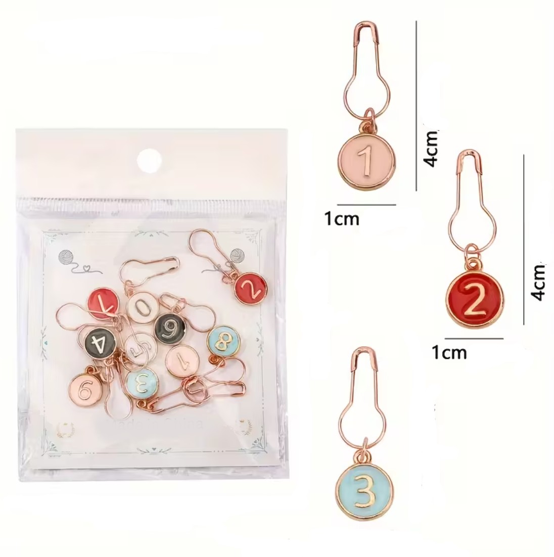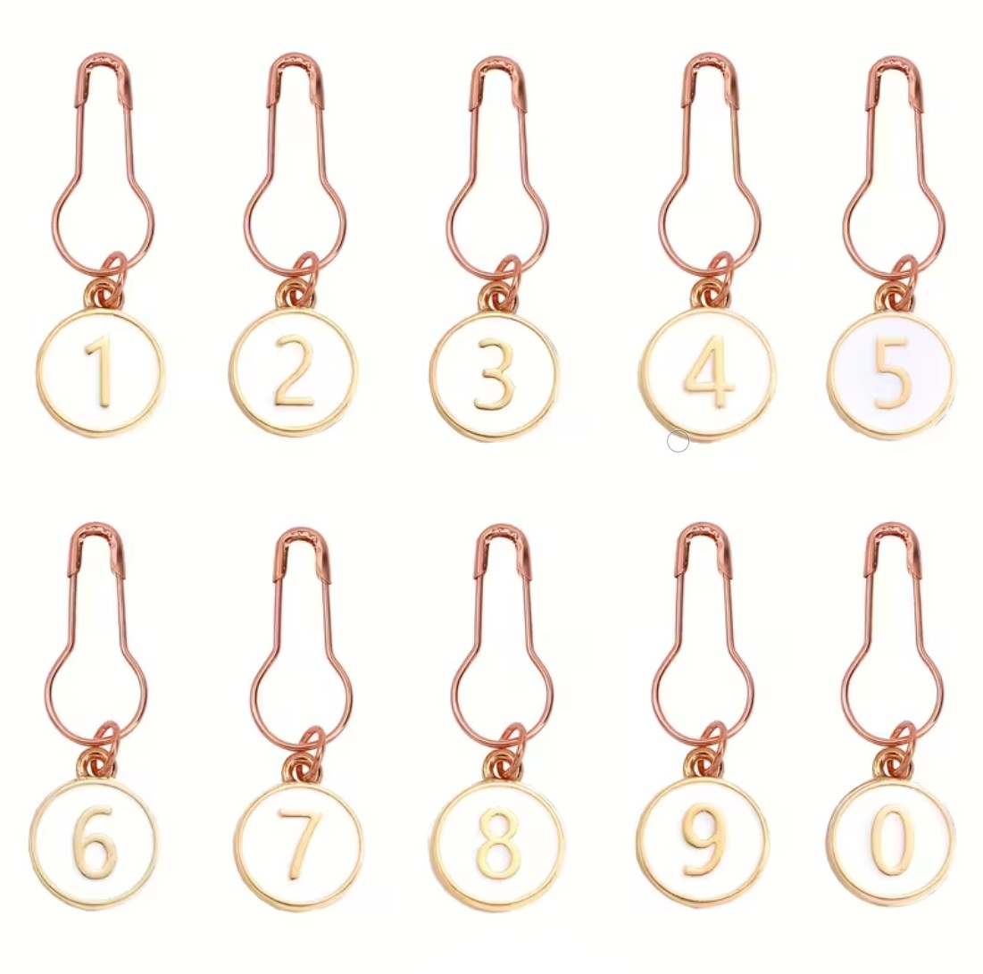 Nämä emaloidut silmukkamerkit on varustettu numeroilla 0–9 ja kätevällä lukitusmekanismilla, joten voit helposti seurata kerroksia tai merkitä tiettyjä kohtia työssäsi.