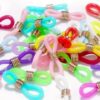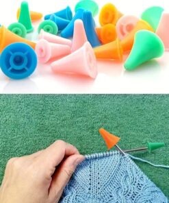 Silikoniset stopparit puikon päissä estävät silmukoiden karkaamisen puikolta. Paketissa 20 kpl eri kokoisia puikonsuojia.