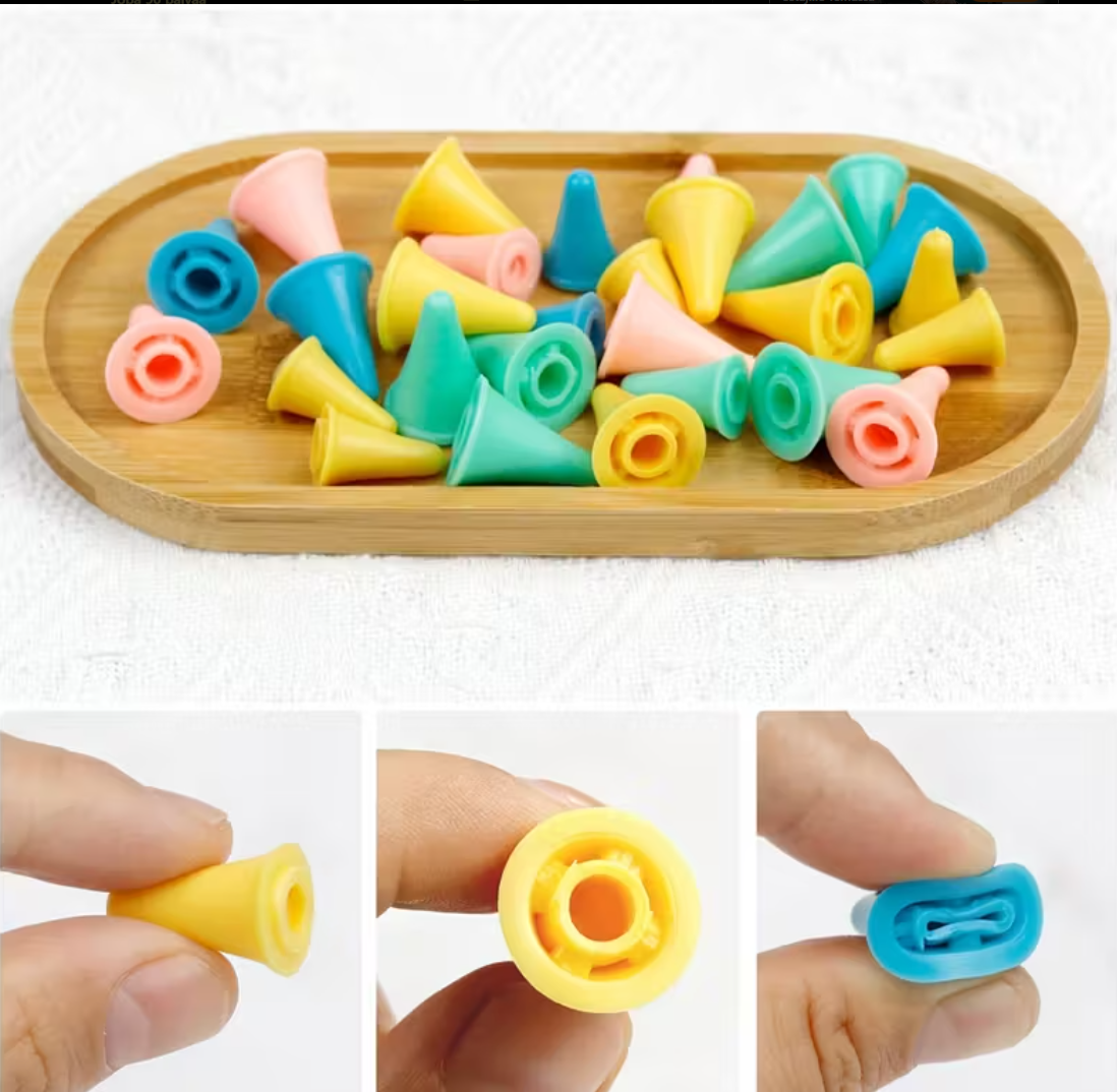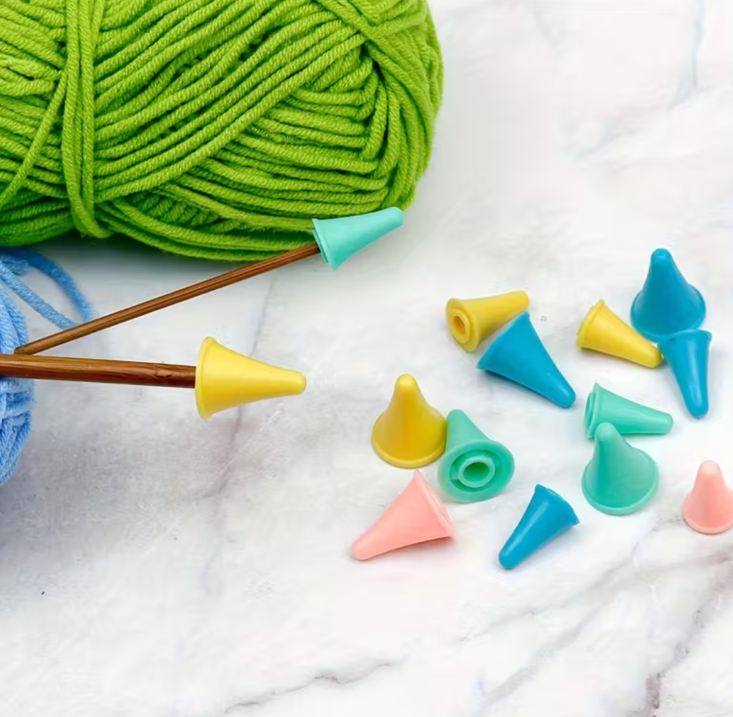 Puikkosuojukset/stopparit ovat näppärät pikku apurit neuloessa. Kätevät puikkostopparit suojaavat puikkoja ja estävät silmukoiden karkaamisen säilytyksessä ja kuljetuksessa. Stopperit ovat kartiomaisia ja valmistettu pehmeästä TPE-materiaalista.