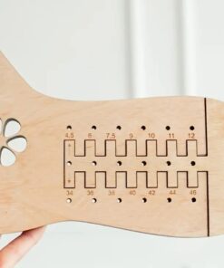 Sukkaplokin voit säätää hammastuksilla olevalla kärkiosalla haluttuun kokoon välillä 34-46. Numeroinnit on laserpoltettu näkyvästi vaneriin.
