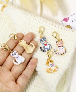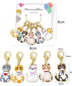 Söpöt Kissat- silmukkamerkit emaloidulla pinnalla ja kullanvärisellä taustalla! Paketissa 5 kappaletta silmukkamerkkejä kätevästi avattavilla lukoilla. Yhden merkin koko n.4.7cm x 1.8cm. Materiaali lyijytön alumiini. Sopii puikoille joiden vahvuus alle 6mm. Voidaan käyttää mm.vetoketjussa tai koristeena.