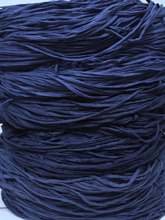 Kolmea eri sinisen väristä trikookudetta valmiiksi vyyhdittynä. Materiaali on 100% puuvillaa eikä se sisällä tärkkiä tai venyvää lycraa. Koukkusuositus 7mm-8mm. Säkin paino 7.75kg.