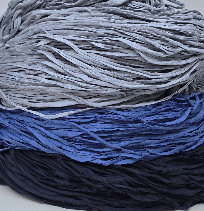 Kuvan mukaiset trikookuteet valmiiksi vyyhdittynä. Materiaali on 100% puuvillaa eikä se sisällä tärkkiä eikä venyvää lycraa. Säkin paino 8.1kg.
