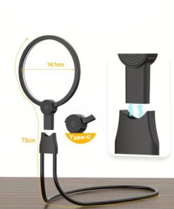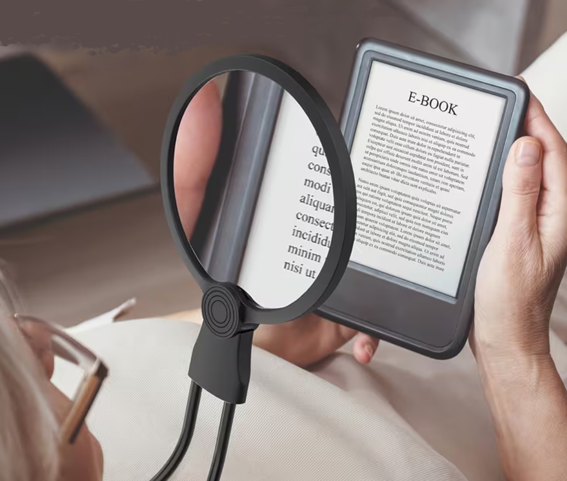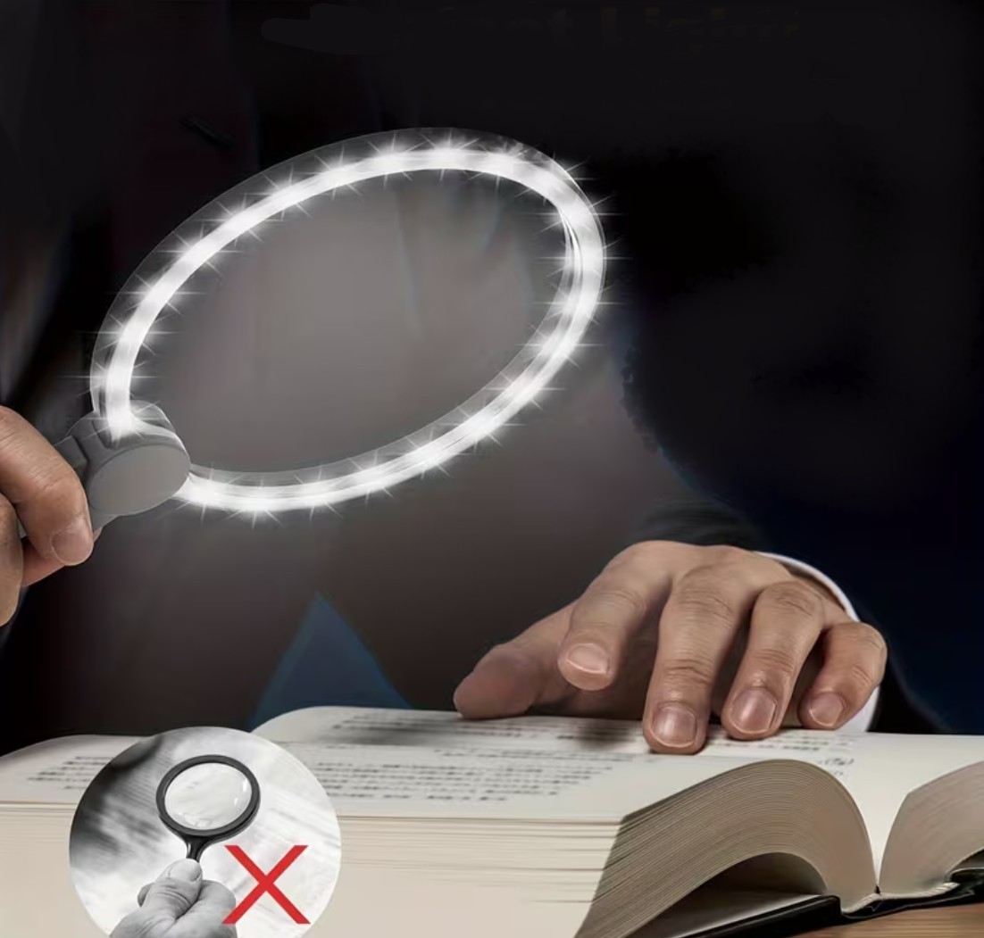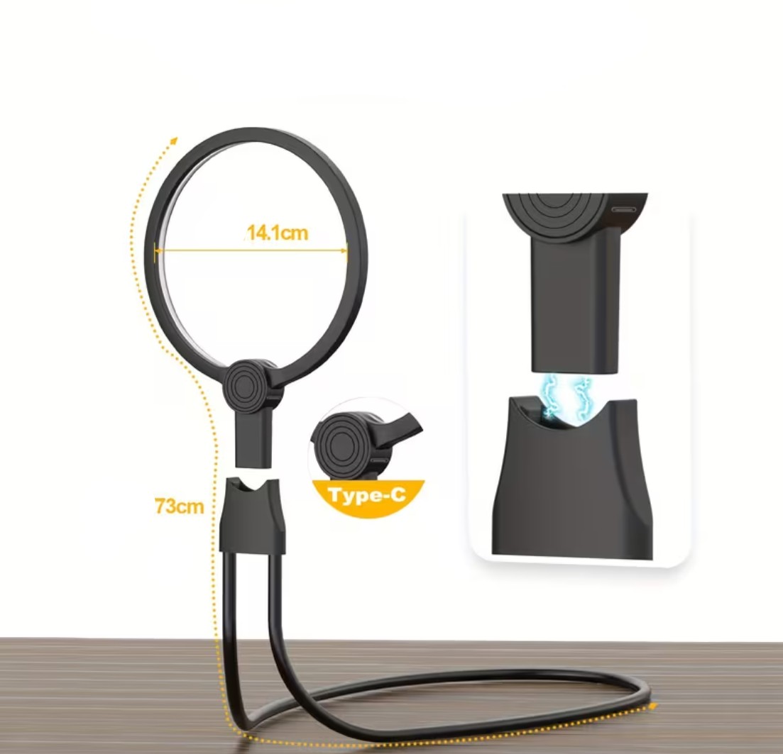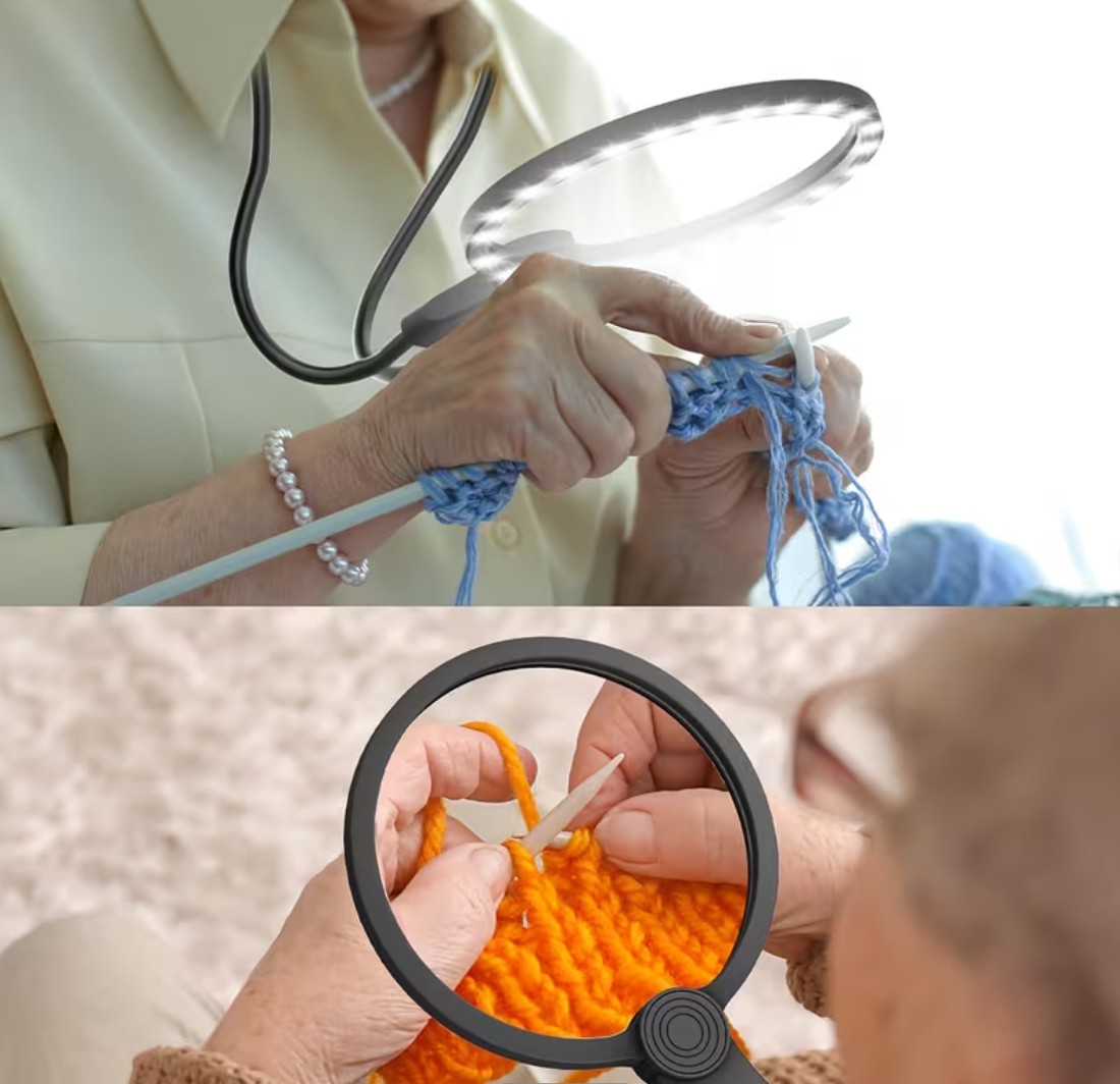 USB- ladattava LED- suurennuslinssi on erinomainen apu lukemiseen ja käsitöihin tai muuhun tarkkaan työskentelyyn. Muotoiltavan silikonivarren ansiosta suurennuslasia voi käyttää sylissä kädet vapaana tai pöydällä.Linssin halkaisija 14cm ja tuotteen kokonaispaino 386 grammaa. Kaulan ympärillä oleva suurennuslasilinssi on valmistettu korkealaatuisesta optisesta PVC:stä (PMMA), joka tarjoaa 5X optisen suurennuksen ilman optisia vääristymiä. Tukeva suurennuslasi avustaa lähityössä, pienten tulosteiden lukemisessa tai heikkonäköisten käyttäjien päivittäisessä käytössä. 24 kirkasta LED- valoa valaisee kohteen hyvin, paketin mukana myös 1 kpl pieni suurennuslasi.
