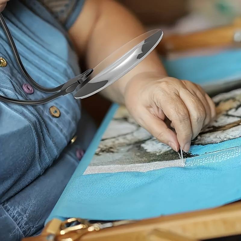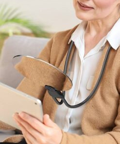Uutta! Suurennuslasi on erinomainen lukemiseen ja käsitöihin tai muuhun tarkkaan työskentelyyn. Muotoiltavan silikonivarren ansiosta suurennuslasia voi käyttää sylissä kädet vapaana tai pöydällä.Linssin halkaisija 13cm ja tuotteen kokonaispaino 386 grammaa. Kaulan ympärillä oleva suurennuslasilinssi on valmistettu korkealaatuisesta optisesta PVC:stä (PMMA), joka tarjoaa 5X optisen suurennuksen ilman optisia vääristymiä. Tukeva suurennuslasi avustaa lähityössä, pienten tulosteiden lukemisessa tai heikkonäköisten käyttäjien päivittäisessä käytössä. Väri puhdas valkoinen.
