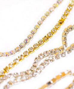 Upeat tekojalokiviketjut askarteluun, koristeluun ym. Tekojalokivi halkaisija 3mm, yhdessä rullassa n.10 metriä. Taustaväri joko hopea tai kulta.