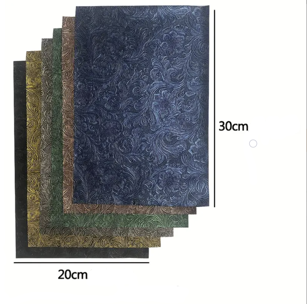 Uutta! Upeat tekonahkaiset kangasarkit, jossa hieno kohokuvio. Arkin koko 20x30cm. Vintage- tyylinen nahkamainen kangas, kukkakuvioinen metallikuvio, erinomaiset askarteluun, kirjansidontaan, albumeihin, laukkuihin, puhelinkoteloille, muistikirjoihin, kynäkoteloille, lompakoihin, käsilaukut yms. Vedenpitävä ja kestävä keinonahka, jossa on teksturoitu metallinen kuvio koverilla ja kuperailla muodoilla. Ihanteellinen DIY-käsityöprojekteihin, kuten kirjoihin, valokuva-albumeihin, laukkuihin, matkapuhelinkoteloihin, muistikirjoihin, kynäkoteloihin, lompakoihin ja käsilaukkuihin.