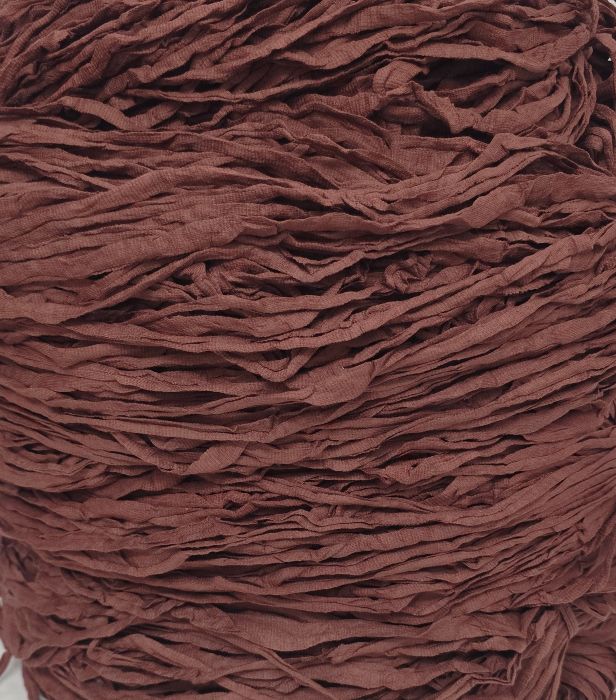 Tumman terran väristä trikookudetta valmiiksi vyyhdittynä. Materiaali on 100% puuvillapikee eikä se sisällä tärkkiä eikä venyvää lycraa. Koukkusuositus 7mm-8mm. Säkin paino 7.46kg.