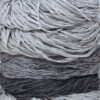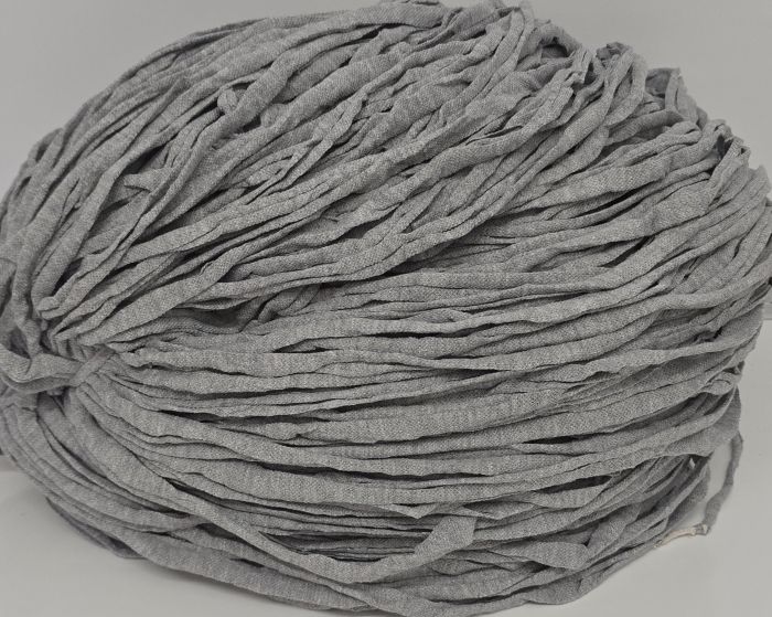 Vaaleanharmaata trikookudetta valmiiksi vyyhdittynä. Materiaali on 100% puuvilla, ei sisällä venyvää lycraa eikä tärkkiä. Koukkusuositus 7mm-8mm. Säkin paino 2.6kg.