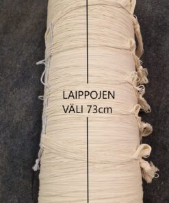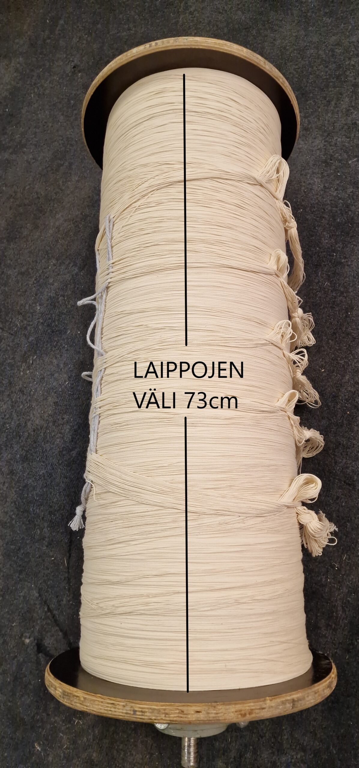 Tässä valmis metallirunkoinen loimitukki sekä loimet. Tukkiin on loimattu kotimaista Liina- kalalankaa, valkaisematon 12-säikeinen. Lankaluku 147 lankaa ja pituutta loimella 400 metriä. Loimen paino 24 kg. Tästä valmis tukki lankojen ja loimauksen hinnalla! Laippojen sisämitta 73cm ja kokonaispituus n.102cm. Tukki kulkeutuu jakeluauton mukana rahtivapaasti reitin mukaan. Tarkemmat tiedustelut Jarmo 0400-265911.