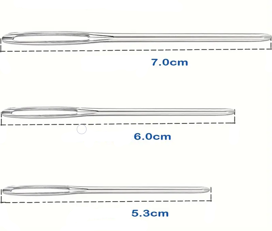 Näissä villaneuloissa on iso silmä ja tylppä kärki. Kärjen kaarevuus helpottaa päättelyä tai kappaleiden liittämistä toisiinsa. Putkilossa 8 kpl kaarevia neuloja sekä 4 kpl suoria neuloja.